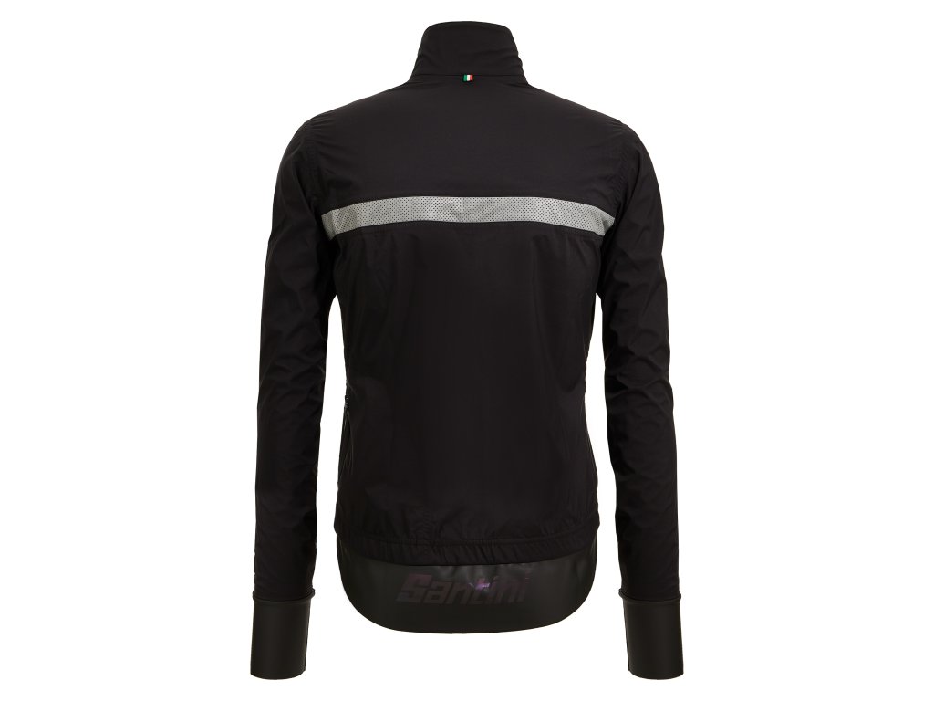 SANTINI Guard Neo Shell je inovativní bunda do deště vyrobená z jedinečné tkaniny POLARTEC® Neoshell s tkaným povrchem. Poskytuje dokonalou ochranu i za největšího lijáku, zároveň nabízí špičkovou prodyšnost. Bunda je vybavena plně podlepenými vnitřními švy a nepromokavým dvojitým zipem. Ergonomicky tvarovaná zadní ochrana proti stříkající vodě, vyrobená z fleecem podšité tkaniny Superroubaix s plně voděodolnou vnější vrstvou z PU, odpuzuje vodu. K tomu reflexní prvky, vysoce reflexní značka Santini na rameni a boční nepromokavá kapsa na zip pro bezpečné uložení cenností.