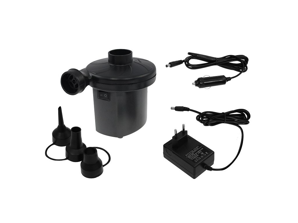 Kompaktní elektrická pumpa, která je vhodná pro nafukování matrací, menších člunů, zahradních bazénů apod. Pumpa má navíc zpětný chod a umožňuje tak vypouštění vzduchu z objemných předmětů jako jsou matrace či bazény. Vyrobena z lehkých a odolných materiálů.3 nástavce