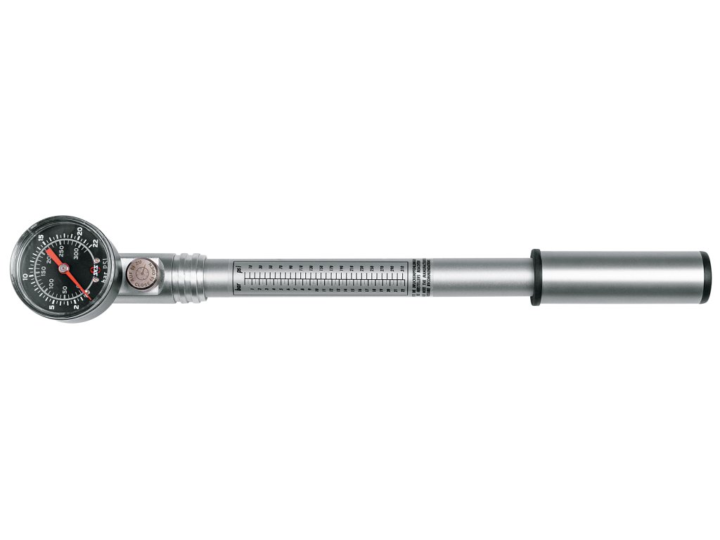 Profesionální dílenská hustilka SKS USP na odpružené vidlice z leštěného hliníku umožňuje přesné nafouknutí díky upouštěcímu ventilu. Je dlouhá 34 cm a dosahuje maximálního tlaku 22 bar (315 PSI).