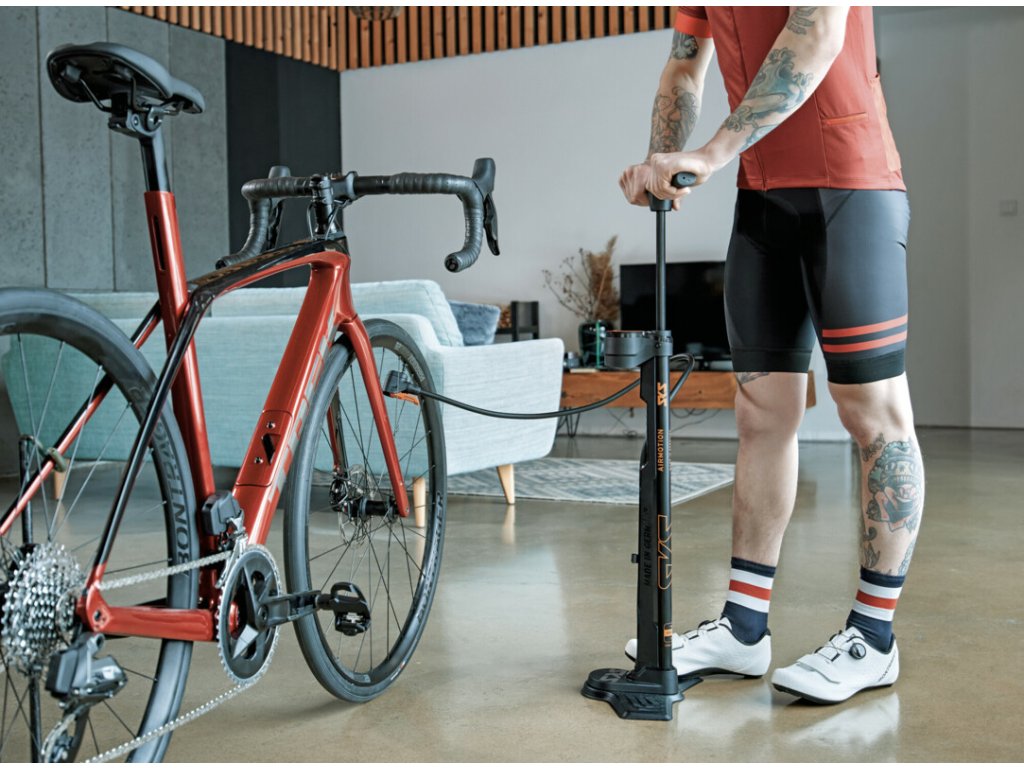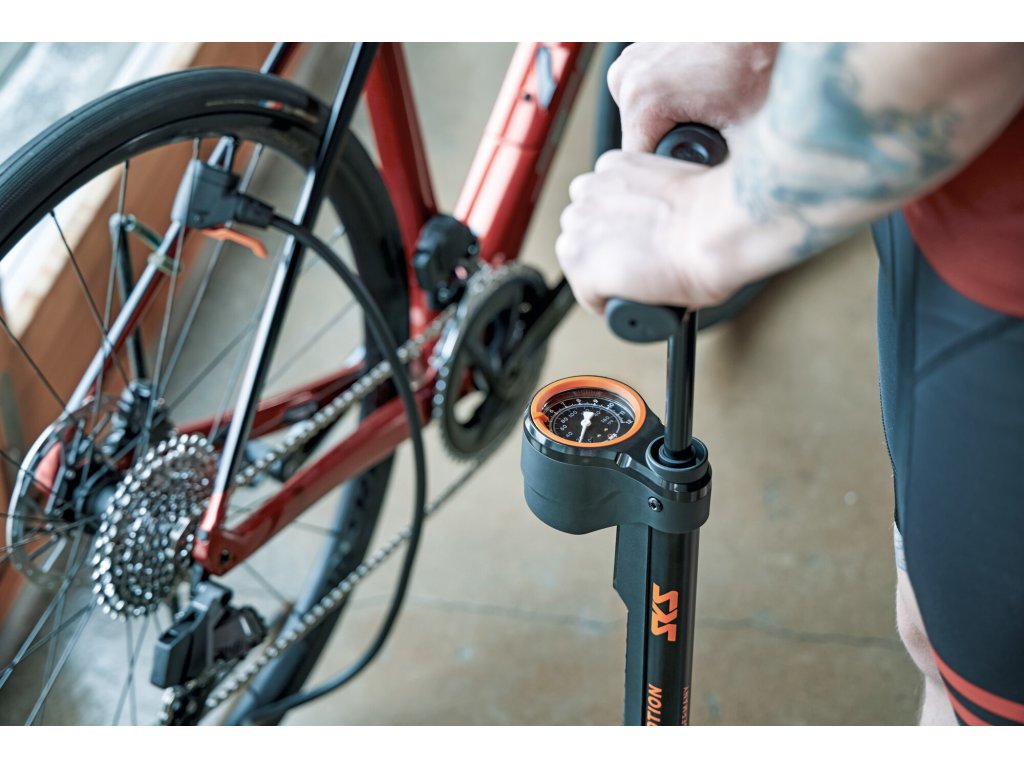 SKS Airmotion 12 je servisní pumpa, vhodná pro hobby i profesionální použití. Dosahuje maximálního tlaku 12 barů, má výšku 715 mm a objem stlačení 343 cm³.