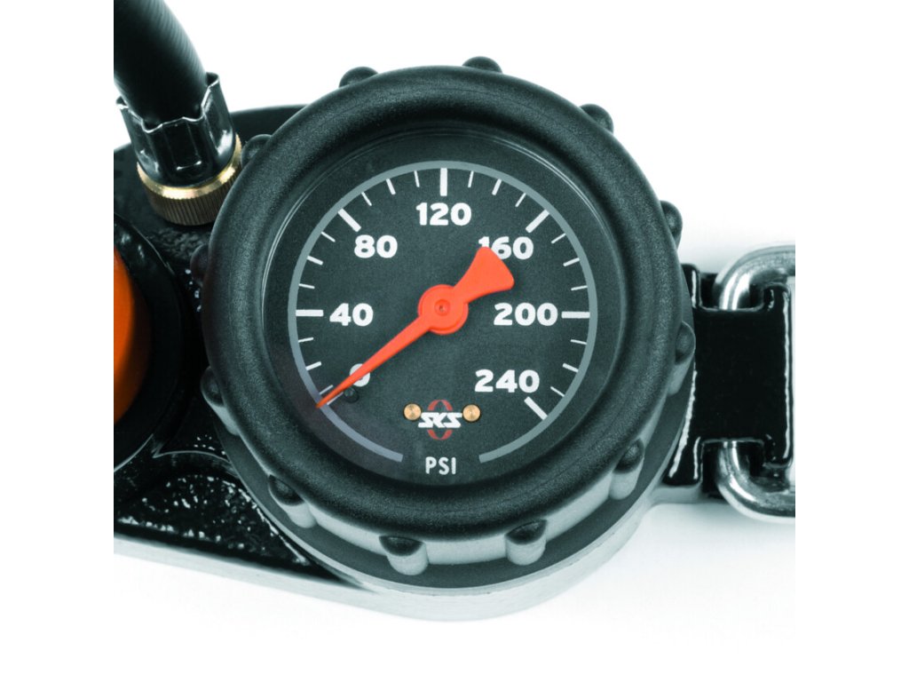 Servisní pumpa se dodává v autentické oranžové barvě SKS a je volitelně k dispozici se dvěma různými ventilkovými připojeními, jako je otočná E.V.A. nebo vylepšená hlava "MV EASY" MULTI VALVE, pro všechny druhy ventilků. Posilovač tlaku nafouká pláště jízdních kol až na tlak 16 barů/230 psi.