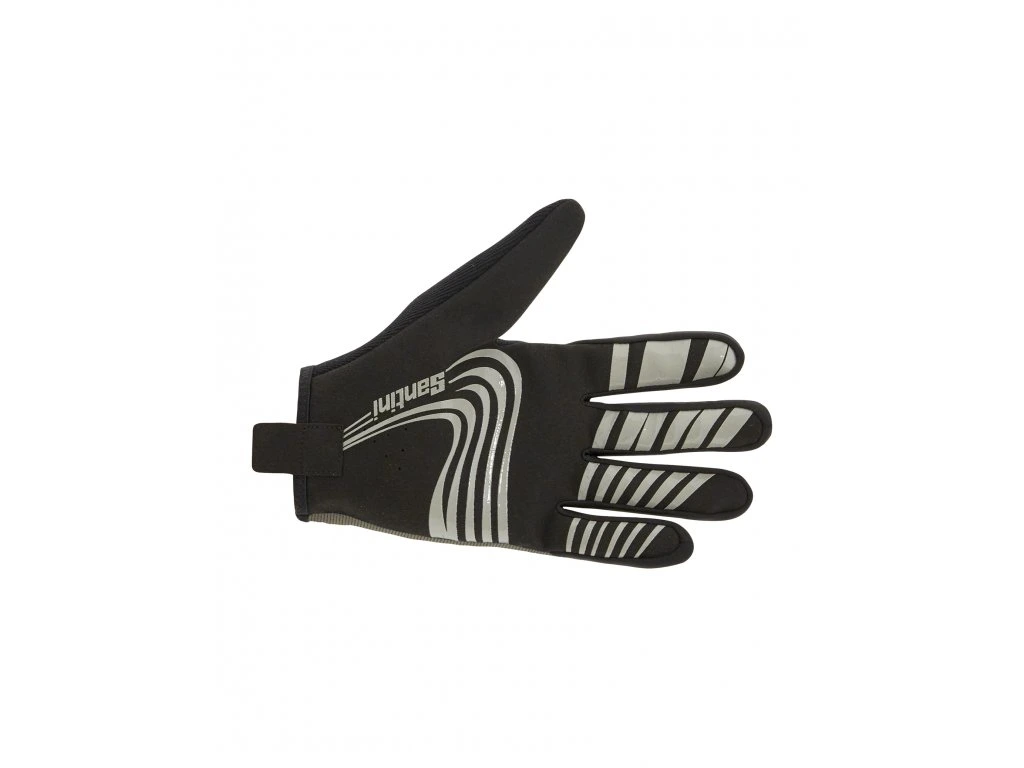 SANTINI MTB rukavice jsou dlouhoprstý odolný model hodící se do drsného prostředí jako ochrana. Jsou opatřeny protiskluzovým silikonovým potiskem na dlani a konečcích prstů, aby vám řídítka v nezpevněném terénu nevyklouzly z ruky, a byly vyrobeny z oděruvzdorné látky pro maximální bezpečí. Také mají reflexní logo na zápěstí pro viditelnost i za šera, a tím i vaši bezpečnost.