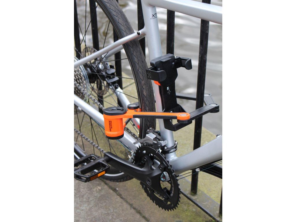 Balení obsahuje inovovaný snadno nainstalovatelný držák Click Tight, který zabraňuje nepříjemnému chrastění zámku při jízdě.